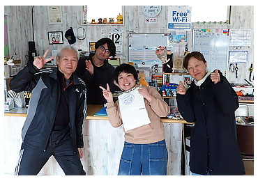 アロハダイブから心からお祝いの気持ちと、表彰状、プレゼントをお渡ししています。
